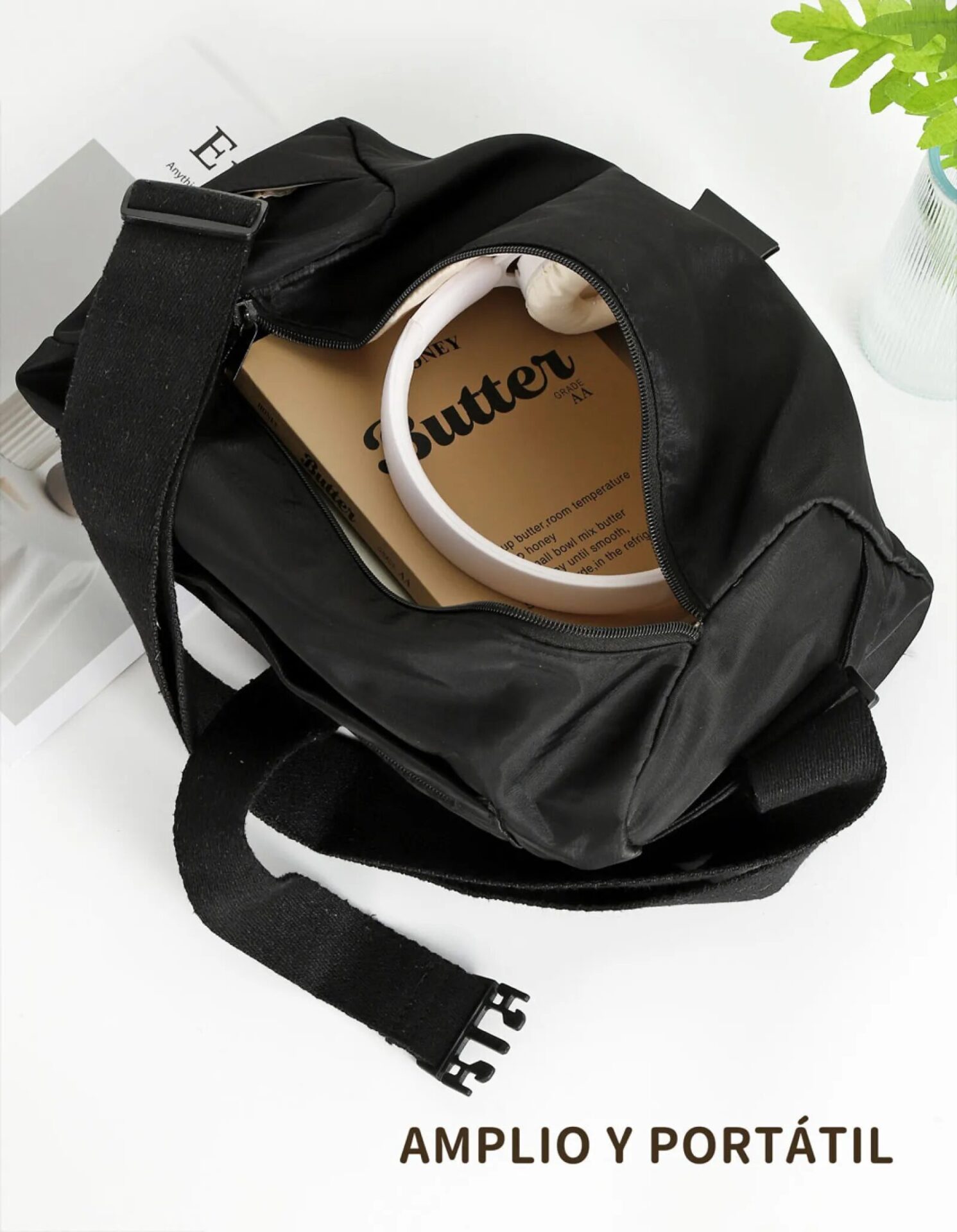 Bolso de viaje. Diseño práctico y versátil ideal para uso diario, gimnasio o viajes cortos. Fabricado en resistente material de poliéster, ofrece durabilidad y ligereza. Cuenta con un compartimento principal amplio con cierre seguro, bolsillo frontal con cierre para accesorios y correa ancha ajustable para mayor comodidad al llevarlo al hombro o cruzado. Su formato compacto lo convierte en una opción funcional y moderna para cualquier ocasión.