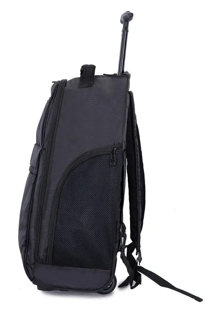 Fabricada en resistente material Oxford, esta práctica mochila combina la comodidad de una mochila tradicional con la funcionalidad de una valija con ruedas. Cuenta con asa telescópica ajustable, correas acolchadas para los hombros y múltiples compartimentos que permiten organizar pertenencias de manera segura. Ideal para viajes, trabajo o estudio.