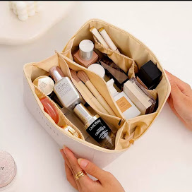 Espacio de almacenamiento múltiple: grandes aberturas están diseñadas en ambos lados de la bolsa de cosméticos para almacenar pinceles cosméticos, sombra de ojos, base líquida, etc. También hay un bolsillo en el medio para almacenar delineador de ojos, de cejas, etc. Hay tres bolsillos elásticos pequeños independientes al lado, que pueden almacenar lápiz labial, joyas y otros artículos pequeños.