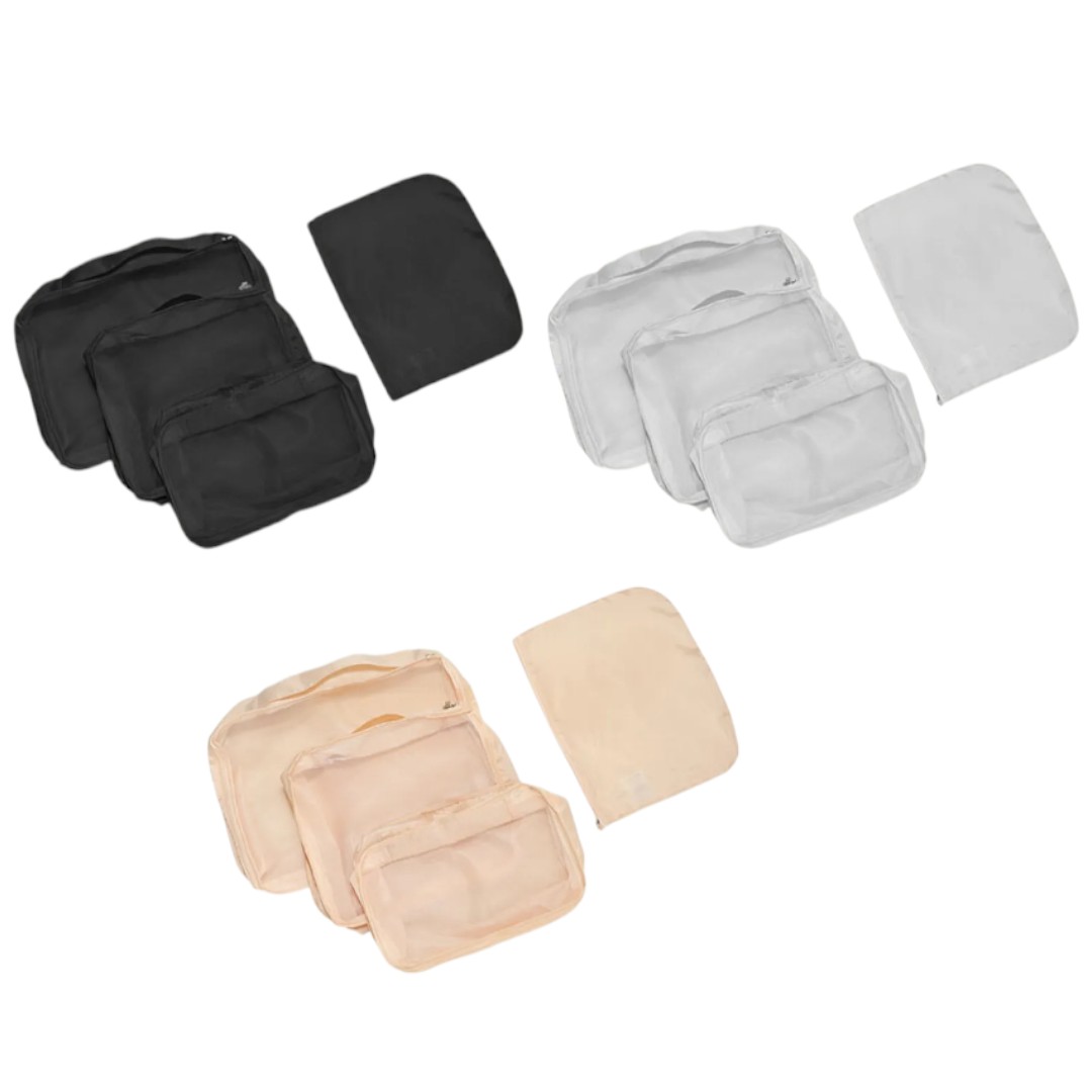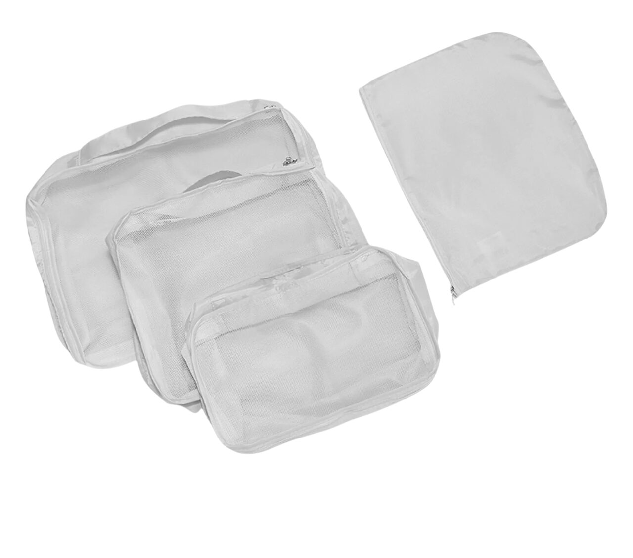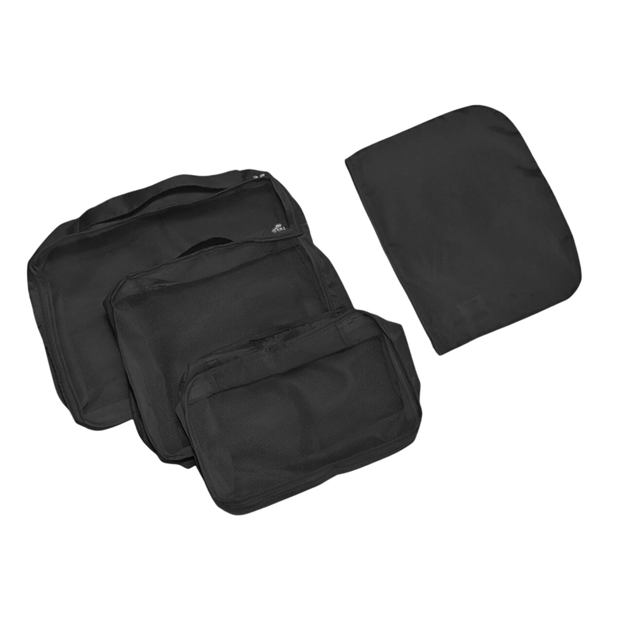 Este set con 4 organizadores negros y elegantes, de distintas medidas te permite guardar en tu valija tu ropa, zapatos y cosméticos de una manera ordenada y práctica.