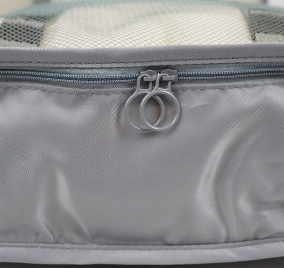 Cada pieza tiene una manija para poder agarrar fácilmente y acomodar en bloque tu ropa en el placard del hotel al que vayas.