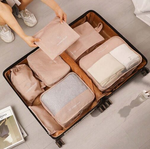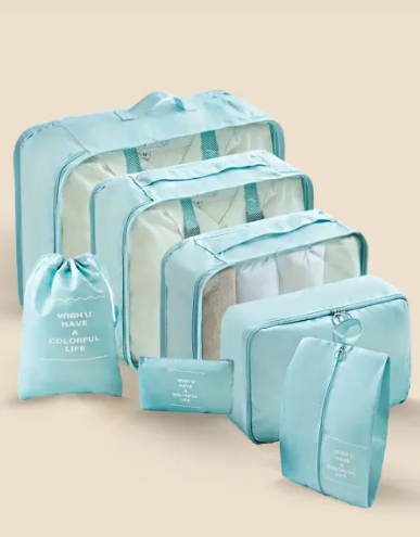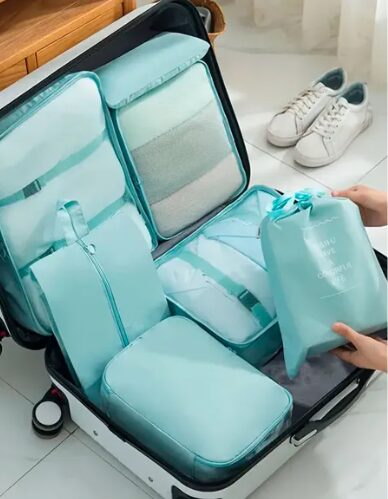 Este set con 7 organizadores de distintas medidas te permite guardar en tu valija tu ropa, zapatos y cosméticos de una manera ordenada y práctica.